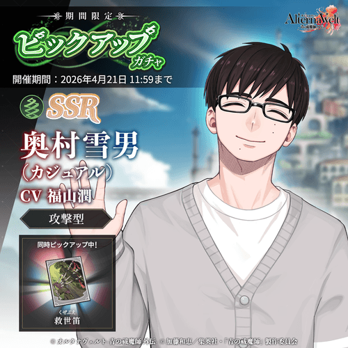 新たなプレイアブルキャラクター「SSR 奥村雪男 (カジュアル)」がピックアップで登場するガチャを開始しました。